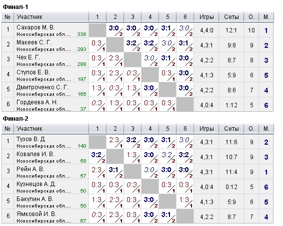 Таблицы любительских турниров