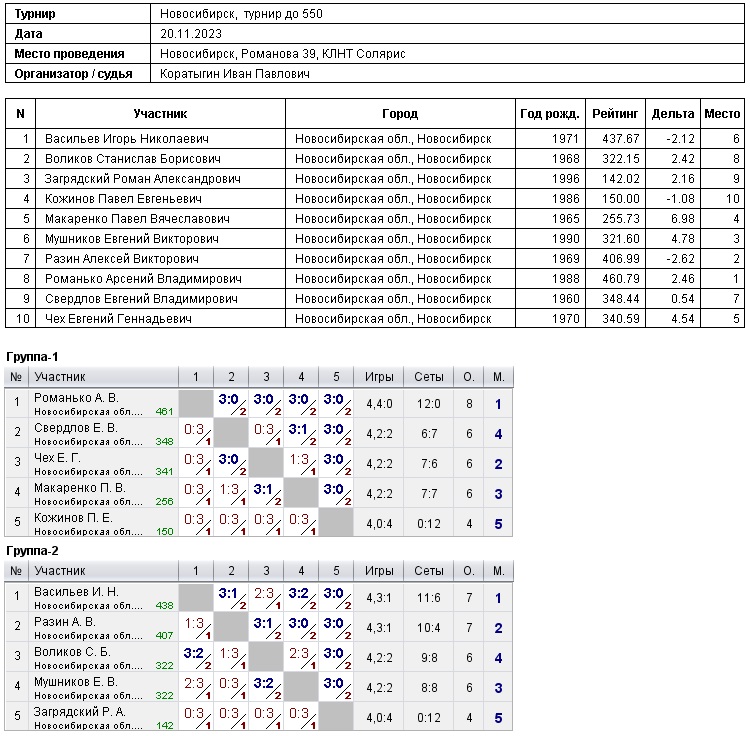 20.11.2023 г., Турнир до 550