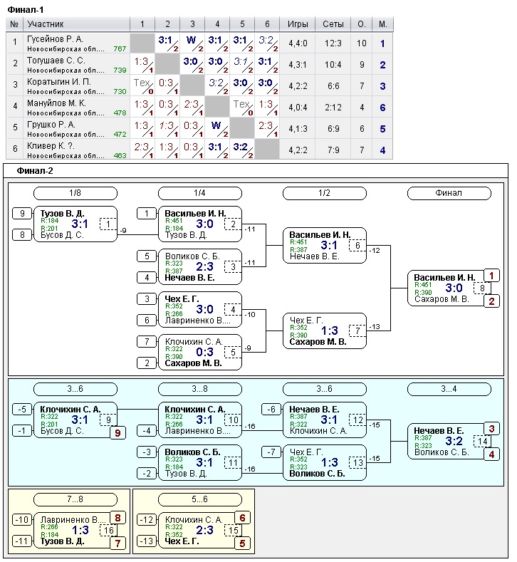Таблицы любительских турниров