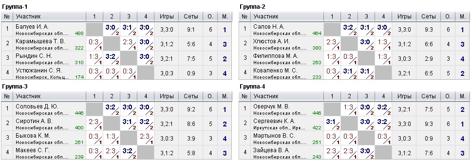 Таблицы любительских турниров