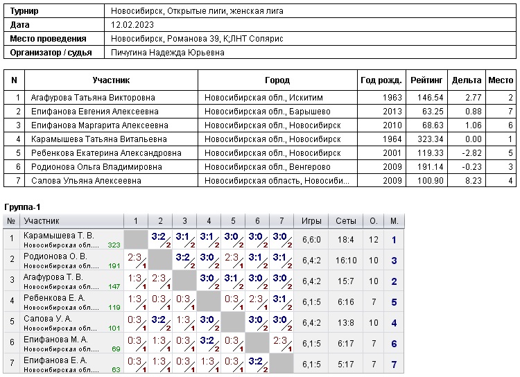 12.02.2023г., Открытые лиги, женская лига