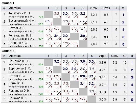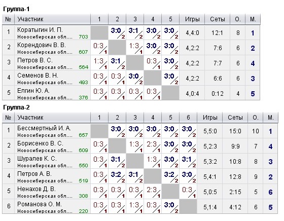 Таблицы любительских турниров