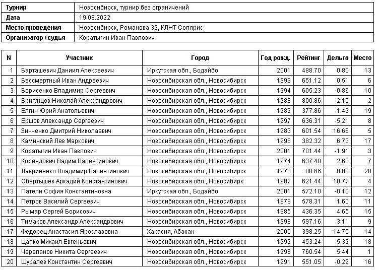 19.08.2022г., Турнир без ограничений