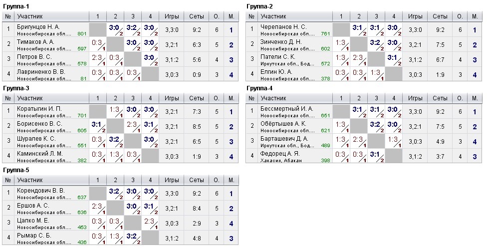 Таблицы любительских турниров