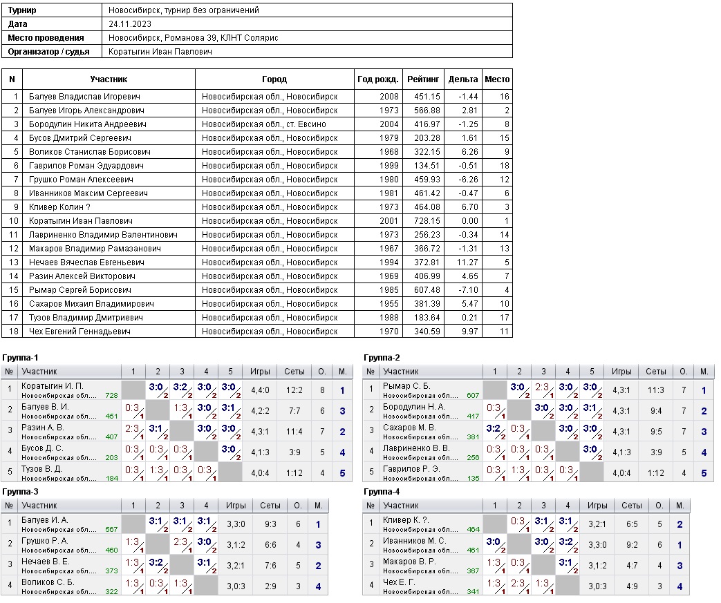 24.11.2023 г., Турнир без ограничений