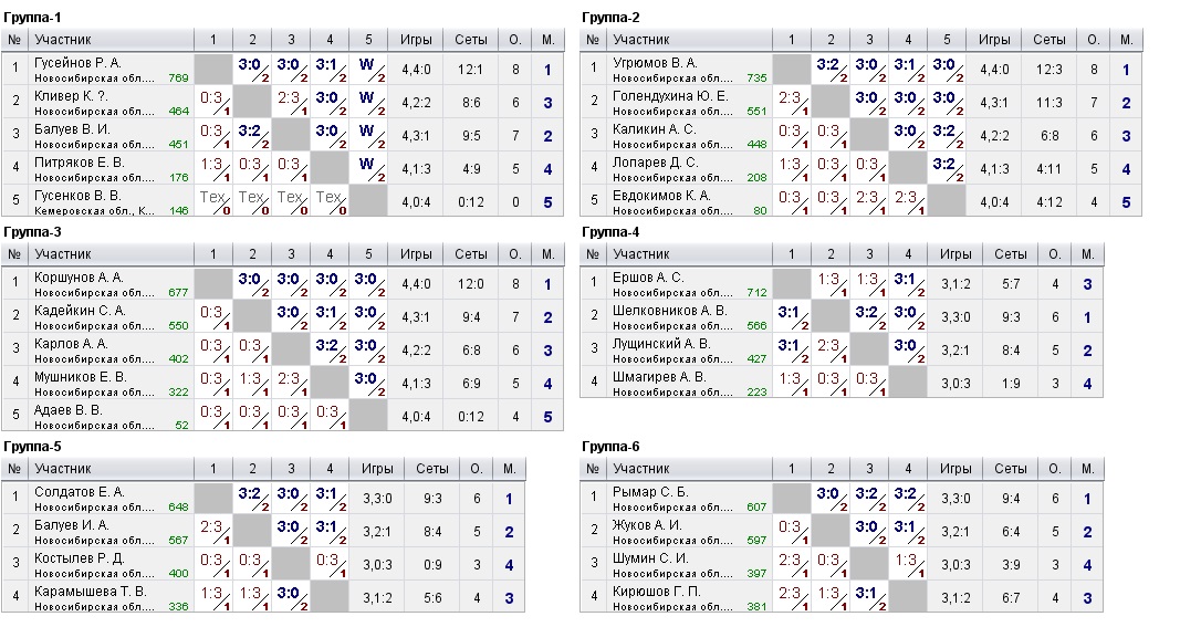Таблицы любительских турниров
