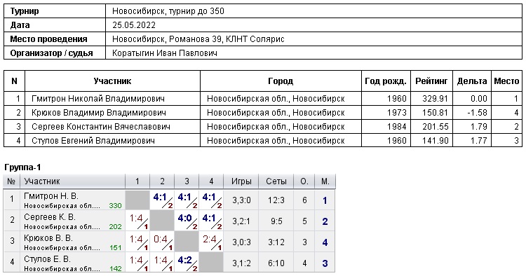 Турнир до 350, 25.05.2022