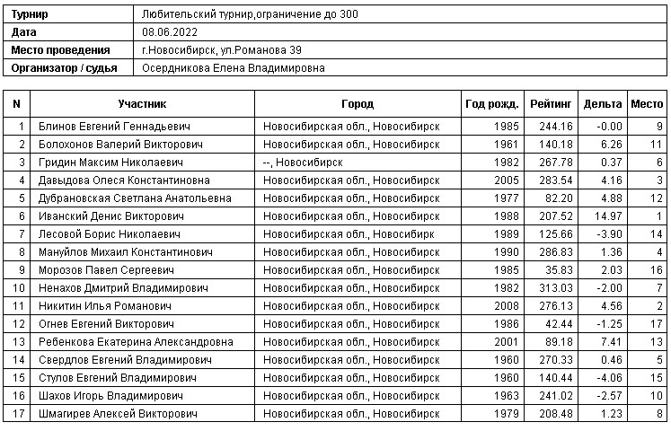Турнир с ограничением рейтинга до 300