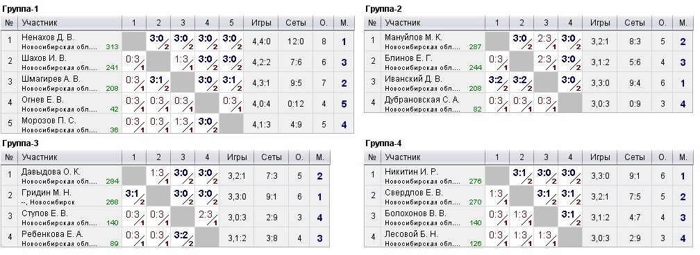 Таблицы любительских турниров