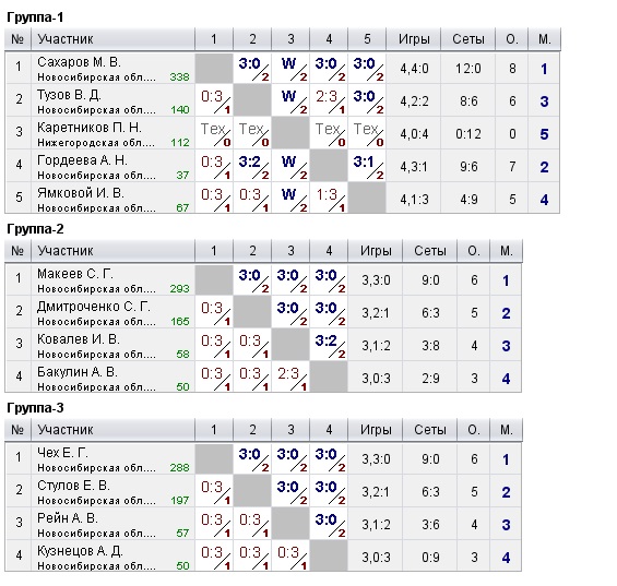 Таблицы любительских турниров