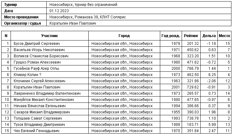01.12.2023 г., турнир без ограничений
