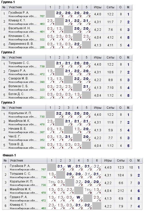 Таблицы любительских турниров