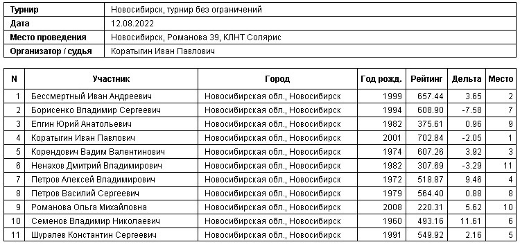 12.08.2022г., Турнир без ограничений
