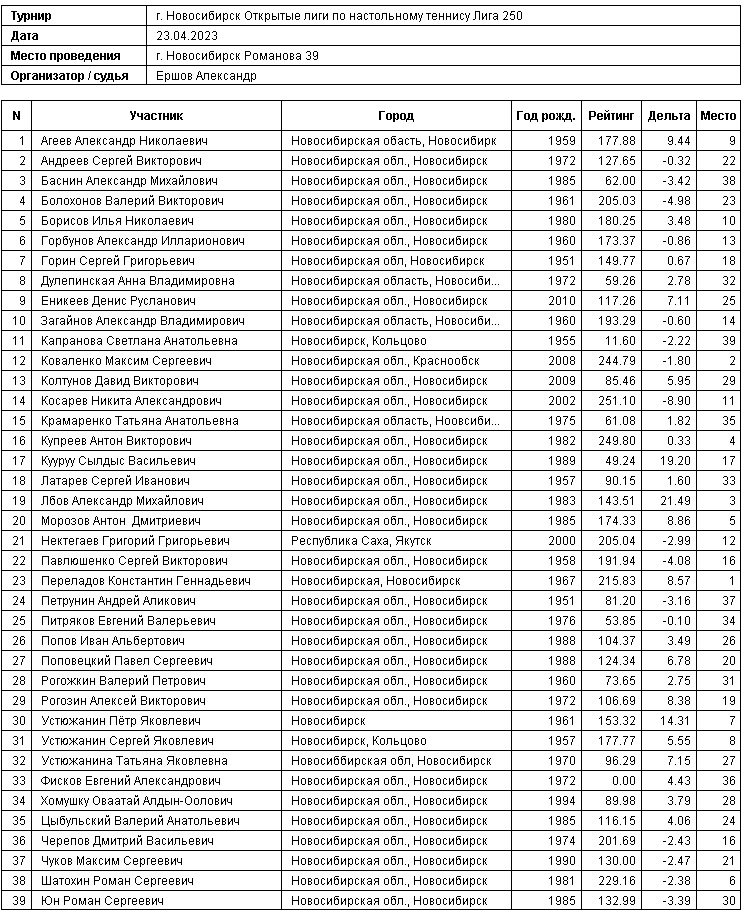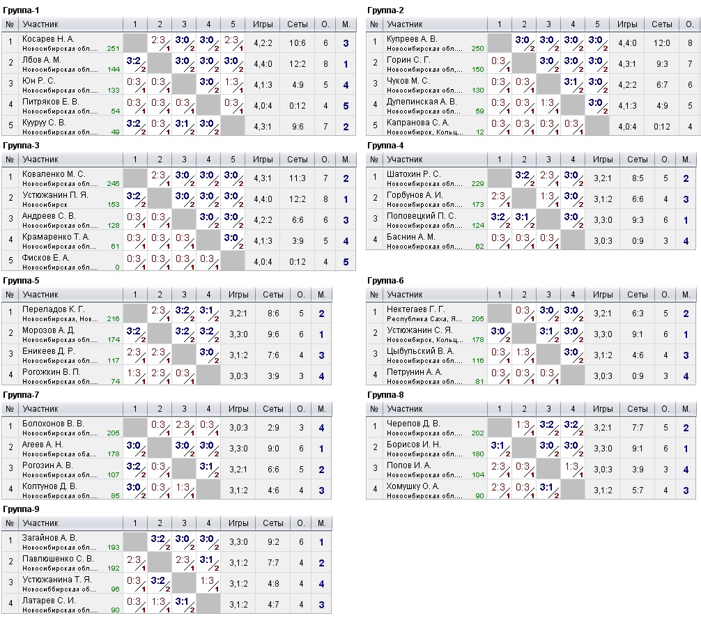 Таблицы любительских турниров