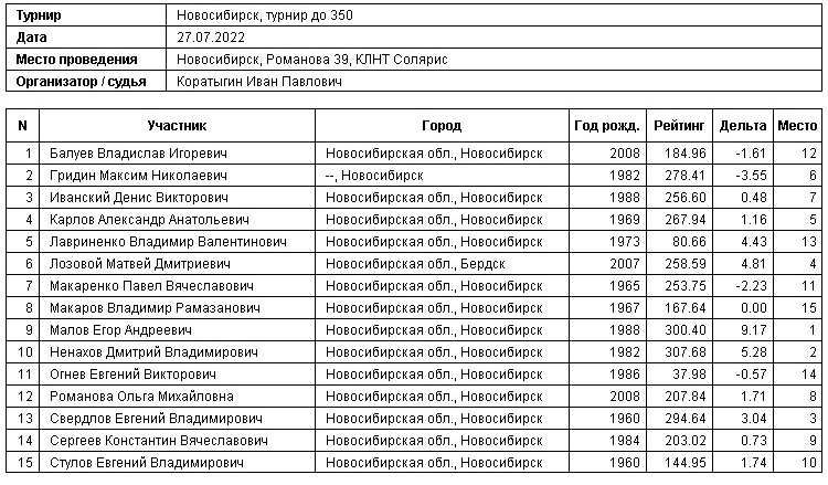 27.07.2022г., Турнир до 350